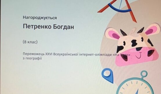 ВІТАЄМО Петренка Богдана, переможця Всеукраїнської інтернет-олімпіади з географії. МОЛОДЕЦЬ!